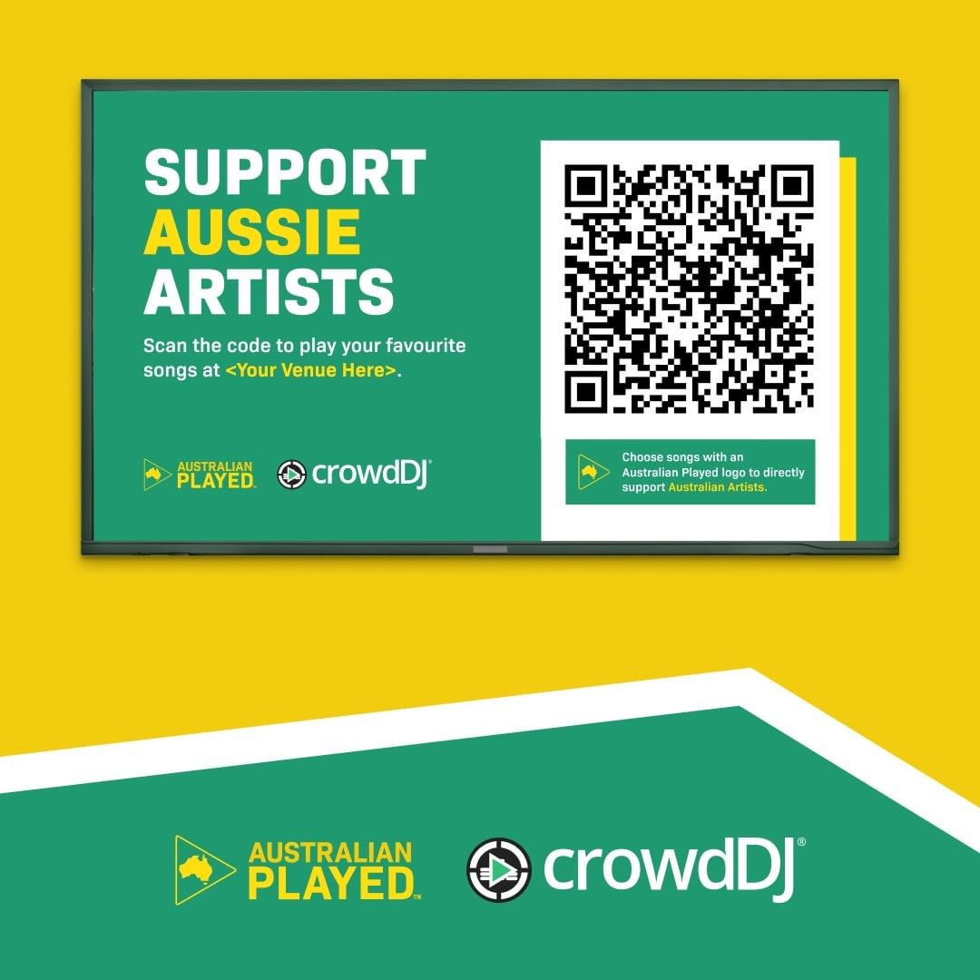 Any Aussie song that plays through Nightlife will ensure an Aussie artist gets paid. Music lovers can help by looking for the Australian Played logo when they are choosing their music with our free jukebox app crowdDJ.